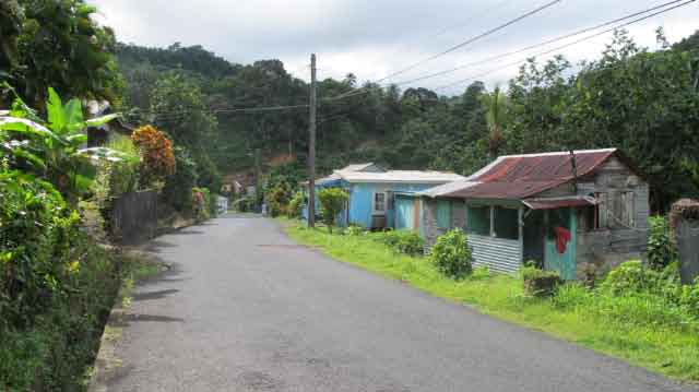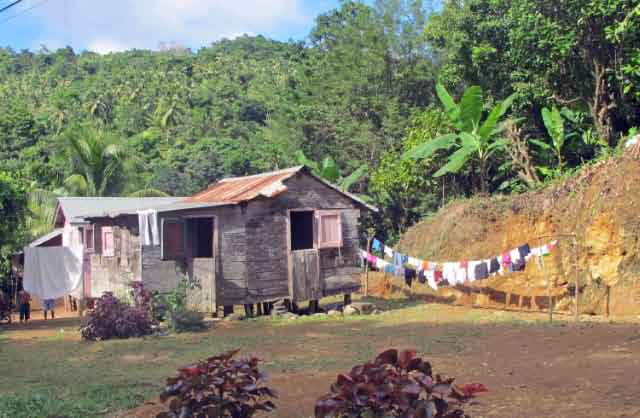 | Great views of the Atlantic waves crashing onto the shore | A local returns from working in the plantations | Typical Dominica houses along the road |