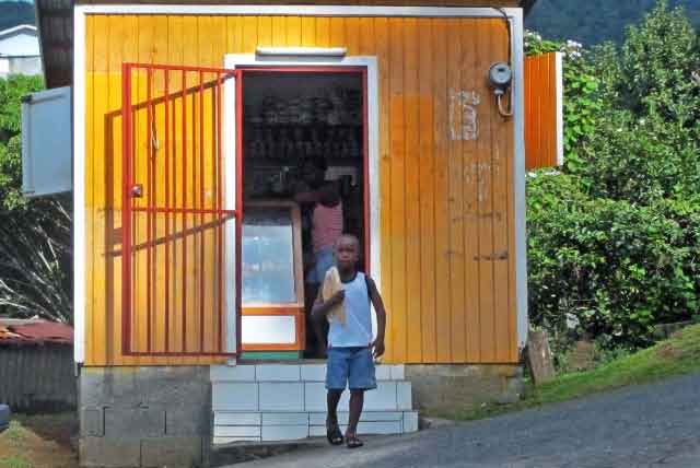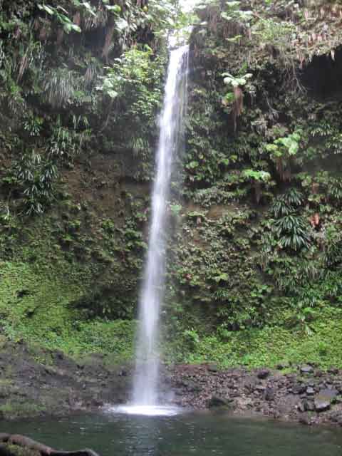 | December 28 We arranged an island tour with one of the Boat Boys, who took us to Customs first to take care of business. An Australian couple on a cat anchored close to us joined us to share the expenses of the roadtrip. In my opinion, Dominica is certainly one of the most beautiful island we have visited to date. Still very traditional, and looking the same unspoilt way it did hundreds of years ago. Valleys, gorges and mountains set the scene for wood clad shacks set on hillside villages surrounded by coconut, banana, mango, starfruit, papaya trees and every spice imaginable in a tangle of vines, flowering shrubs and ferns. Driving down the narrow rutted roads was magical, reminiscent of the South Pacific. Dominica is a hikers paradise and I wish we could have stayed longer to enjoy some of the numerous waterfalls and walks through the tropical rainforests. Everywhere lush mountains beckon, their dark green summits disappearing into the clouds. There are a number of active volcanoes on the island and many hot pools and sulphur springs as a result. The villages in Dominica mostly remain untouched by tourism, aside from quaint lodgings scattered along the coast. Everywhere the people are super friendly. |