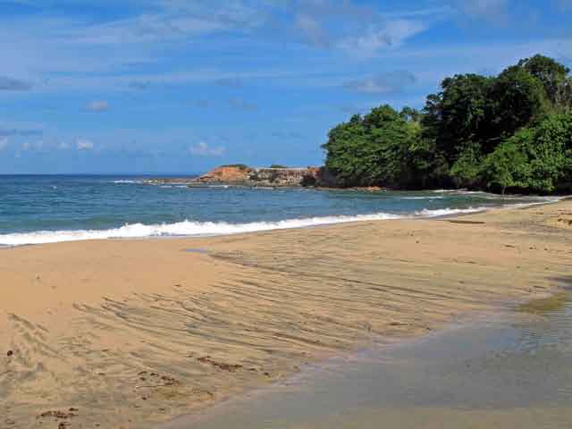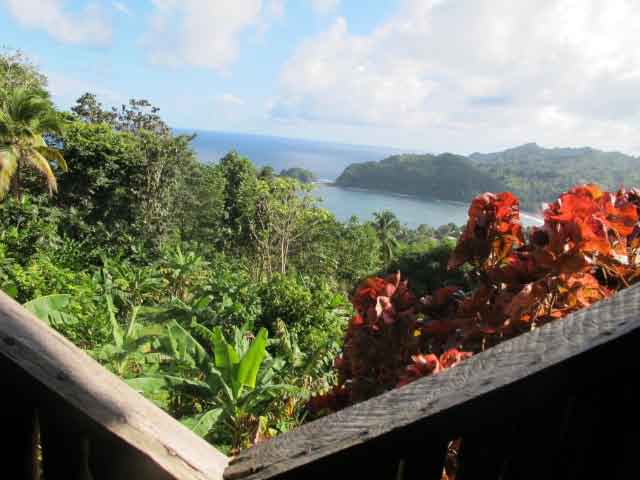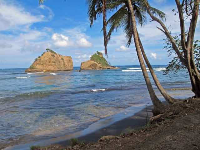 | | We drove through the Northern Forest Reserve to the town of Calibishe along a twisty road carved through the jungle of fruit trees and wildflowers. The Atlantic coastline had many lovely beaches, both white and black sand. |