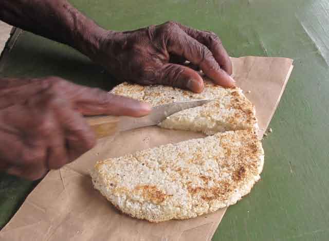 | Roadside baskets | Fresh Casava is grated with this wheel and cooked with coconut over an open flame for a delicious filling bread. |