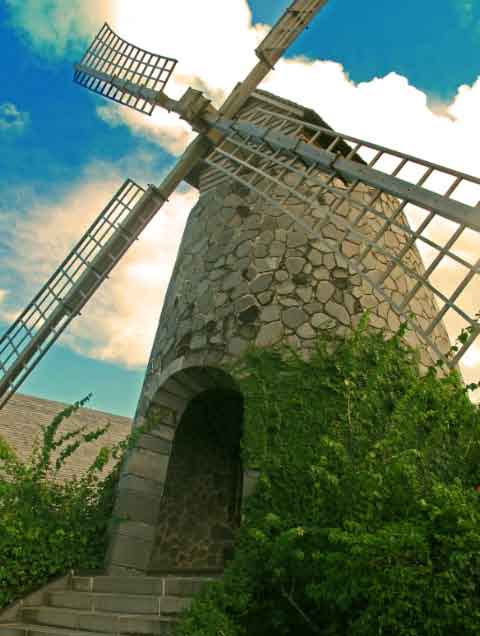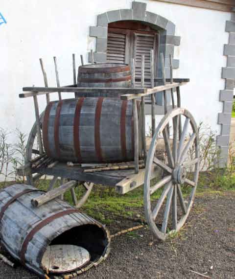 Windmill and old wagon at Three Rivers Rum Factory |