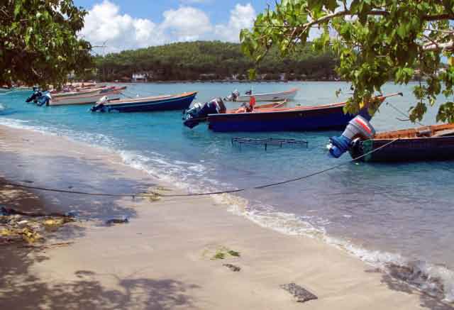 << Les Trois Ilets a charming town with a waterfront walkway bordered by fishing boats. |