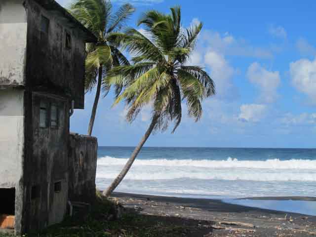 Atlantic Coast On the Atlantic, west side, of Martinique, we drove out onto the peninsula to Anse Etang, a well known surfing beach. We watched the huge rollers, surfers gliding down their backsides. We stopped in the little town of Tartane