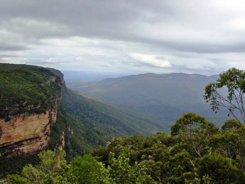 The Blue Mountain area is surmounted by a plateau at an altitude of more than 1000 m where, over the years, rivers have carved ravines into the sandstone resulting in shear precipices and walled canyons.