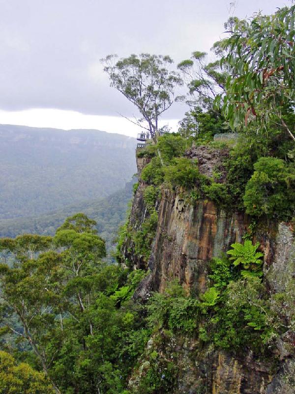 Giant Stairway, 1000 steep steps that wind their way downward, through the center of a rock pinnacle, and descend to the bottom of Jamison Valley.