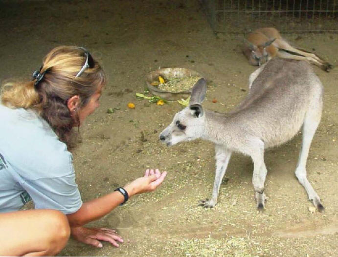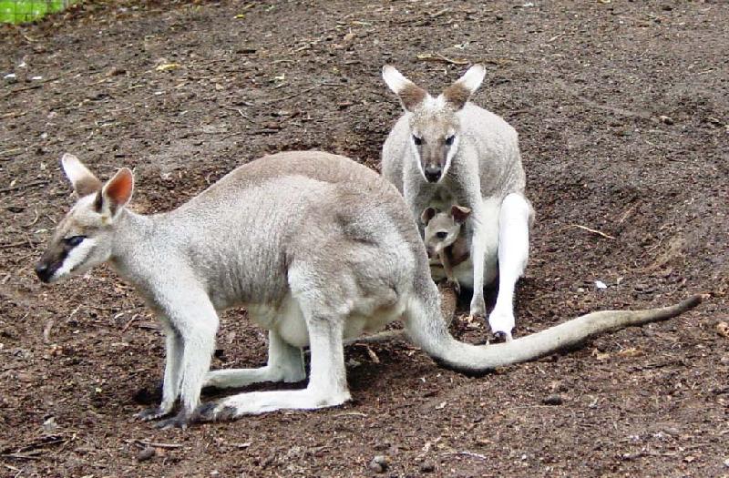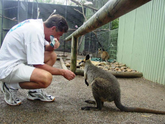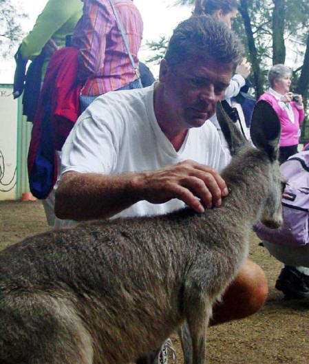 A large enclosure provided personal contact with the wallabies, with a shelter that the animals could go into if they tired of human company. But these little fellows seemed to really enjoy the visitors, especially is you had food for them. Most of the wallabies were Swamp Wallabies like the one we saw in the Hawkesbury Region but there are also Rock Wallabies, Wallaroos along with Red Kangaroos, Grey Kangaroos and even Albino Kangaroos. We all got a chance to pet the cute little marsupials and view them really close up,