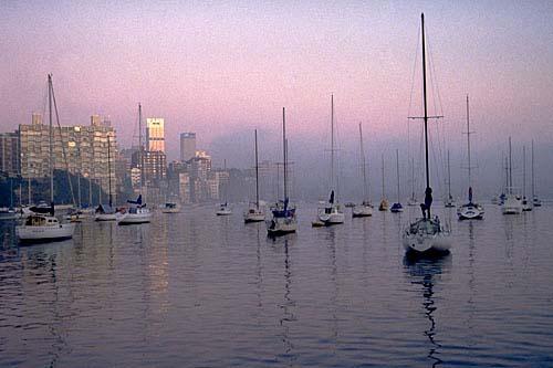 December 2005 We had a good sail from New Castle to Sydney and reached the mouth of the harbour by mid afternoon. Because we were against the tide coming into Port Jackson, it was a slow entrance. Being the weekend, Sydney Harbour (Jackson's Bay) was frenzied with motorboats, yachts, ferries, fishing boats, sailing dinghies and the like. We decided to drop anchor just inside the bay at Spring Cove, near the town of Manly. The anchorage was occupied with several other local boats enjoying the little strip of beach away from the bustle of the city. We had just finished supper when the wind switched to the South and really picked up. Boats all around us immediately began to drag and were sailing past us in every direction. It was very unnerving until they all eventually left. We remained securely set but the sea state had become quite uncomfortable although, having just come from a passage, we were able to endure it. However the next morning we thought we should find a better location and headed into the main part of the harbour. The wind was blowing 30 knots in our face and we were surprised at how busy the bay was with ferries, power and sail boats, fast cats, police boats and the like. We cruised through a few bays searching out an anchorage but mooring balls took up all the available space. It was an extremely busy time of the year with the Christmas/Summer holidays in full swing and the start of the Sydney Hobart Race in a few days. Rushcutter's Bay We finally spotted an opening in amongst the throng of boats on mooring balls in Rushcutter's Bay and dropped the hook. However we were inundated with wake from boats and ferries to the point that we did not feel secure. We took our dinghy into the nearby Cruising Club of Australia where all the boats entered in the Sydney Hobart Race were berthed. We immediately were befriended by a wonderful gentleman whose name was Merv. He was so kind and helpful and before long the Club had offered us a temporary mooring ball. Then Merv personally drove us around the area and took us shopping for groceries. He even arranged passes for us as "Sydney-Hobart Race Crew" so we could use the facilities of the Club. We will always remember his generosity and hope someday we will see him again. Although we were snug on our mooring ball, we were close to the main passageway in the harbour so had to put up with endless rocking and rolling from all the boat traffic. But at night the waters were calm so we could sleep. It was fascinating to watch all the activities, especially the long sleek racing sleds sail past us for their practice sessions. We especially enjoyed the nightly migration of thousands of Flying Foxes as they left the Botanical Gardens and flew directly over the boat to feed. We found everything in the area to be quite convenient with the supermarket only 15 minutes walk away and King's Cross about 10 minutes. King's Cross is a colourful area known for its nightlife, a red light district and home to various Backpacker Hostels. Internet was really cheap at only $2/ hour. Also at King's Cross was the train station that was a quick transport to downtown Sydney. There was also a bus that stopped near the marina. |