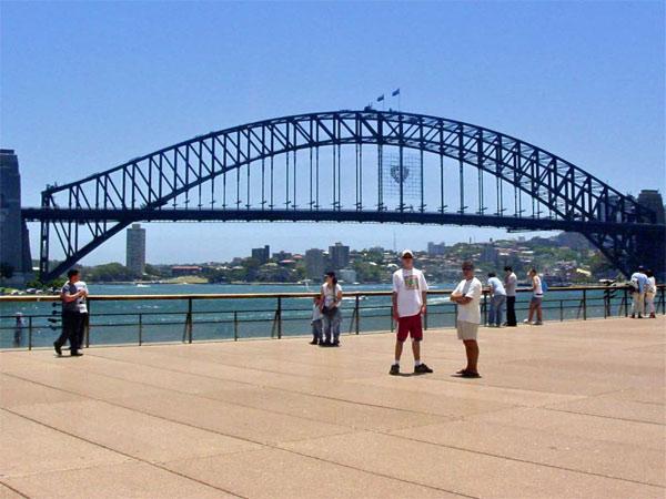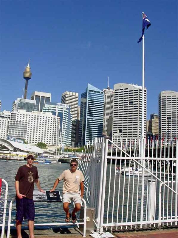 December 25, 2005 Chris' Visit The day we had been waiting for had arrived! The day Chris was coming to visit for Christmas. We had arranged to get to the airport via the Shuttle that would pick us up at a nearby hotel so we were up early and very excited. After enthusiastic welcoming hugs, I had to hold back my tears of joy as we had not seen Chris since his visit last Christmas. We hopped back on the shuttle and were fortunate to be dropped off last, giving Chris a chance to get in a quick tour of many of the highlights of downtown Sydney. |