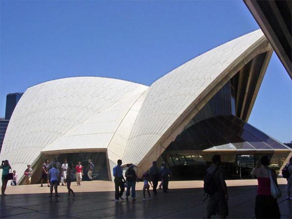 The Sydney Opera House is an icon of Australia with its white roofs, evocative of full sails and white shells. The final price tag on building this structure was $102 million, fourteen times original estimates. We did not tour the inside but had an interesting walk around its perimeter. |
