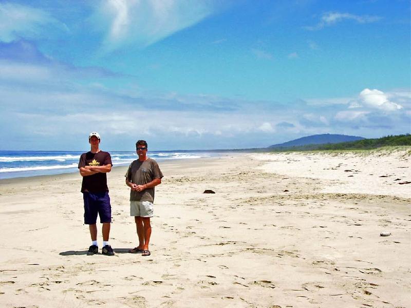 Further south a break in the cliffs gave way to heavy surf territory. The suburban areas were busy with surfers but between the towns, the long spans of beaches were deserted. Although it was no longer raining, it was still quite cool and breezy, so we did not linger to sunbathe or swim. | |