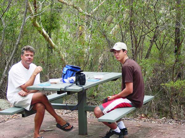 | The following day was grey and dreary but we went ashore anyway. We rented snorkel equipment, although the snorkeling was very disappointing (murky with a lot of current and not many fish). We got our exercise on the walkabout to Shelly Beach and then into the adjacent Sydney Harbour National Park through native bushland. | |