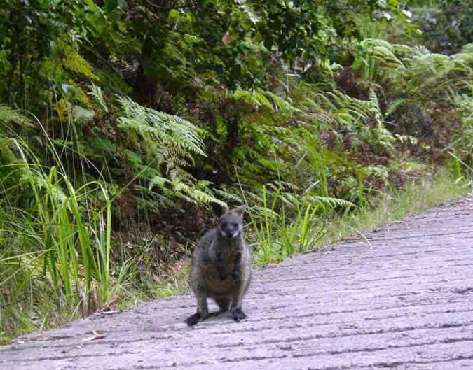 Jervis BayThe road eventually headed inland to Nowra, a centre for the area's dairy farms. We finally reached the waters of the Tasman Sea again at Callala Beach, situated in Jervis Bay. However, other than a long expanse of beach, there is not much in Callala and despite the close proximity of Callala Bay to the major center of Huskisson, there is no way of crossing the creek running into the bay - we had to retrace our route and take a substantial detour. Despite extensive housing development, Jervis Bay retains its clean white beaches and Huskisson still has the feel of an small fishing port. We checked into our motel, had some supper, then decided to take a drive through Booderee National Park in search of kangaroo, since they like to come out of hiding at dusk. | |