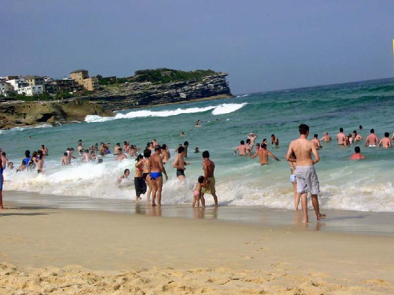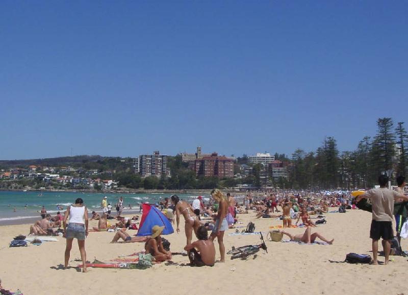 Manly BeachThe fireworks in Sydney were worth putting up with the rolly anchorage but we all tired of the hustle and bustle of the crowds, lack of parking, expensive tolls, and high prices for meals. January 1 On New Years Day we headed to Manly Beach where we anchored near Little Manly Harbour in Four Baskets Bay. . Temps reached 45 deg C so it was smoking hot. It was a long dinghy ride to the harbour beach where we locked the dinghy to the shark fence enclosing the swimming area. Manly is a lively touristy town with lots of shops and even facilities for getting my laundry done. We were able to rent a surf board and took a short walk down the Corso shopping and cafe strip to the ocean side surf beach. That evening a gale warning was issued so we tied up (illegally) to an emergency police buoy in prep for winds that could reach 80 km/hr! It hit about 9 pm and we listened to all the distress calls on the radio and rescue operations as boats drug anchor throughout the bay. We heard that our friends boat Drala Magic was dragging unattended across Sydney Harbour from Farm Cove and felt so helpless. We however, we safe on the police buoy drinking beer and eating cheesecake! The wind did not actually exceed 35 knots where we were. |
