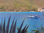 The Bitter End was getting far too crowded so we headed back to Drakes Bay. On the adjacent Mosquito island, we hiked along a cobblestone walk that led to a beautiful, palm fringed beach. However, we were told that the beach had been rented to a private party and we had to climb up the hill to circumvent the area so as not to intrude. The hike up was a little more challenging than anticipated but the views at the top were spectacular, and me without my camera! It was an interesting walk through the fan palms and spider plants, the leaves crunching at our feet.