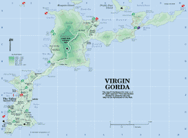 Just 8 1/2 miles long, Virgin Gorda is the third largest in the Caribbean island chain. Its population is 3,500. Dramatic slopes plunge from Gorda Peak to the waters below with many deserted beaches such as  Savannah Bay, Handsome Bay and Big Trunk Bay.