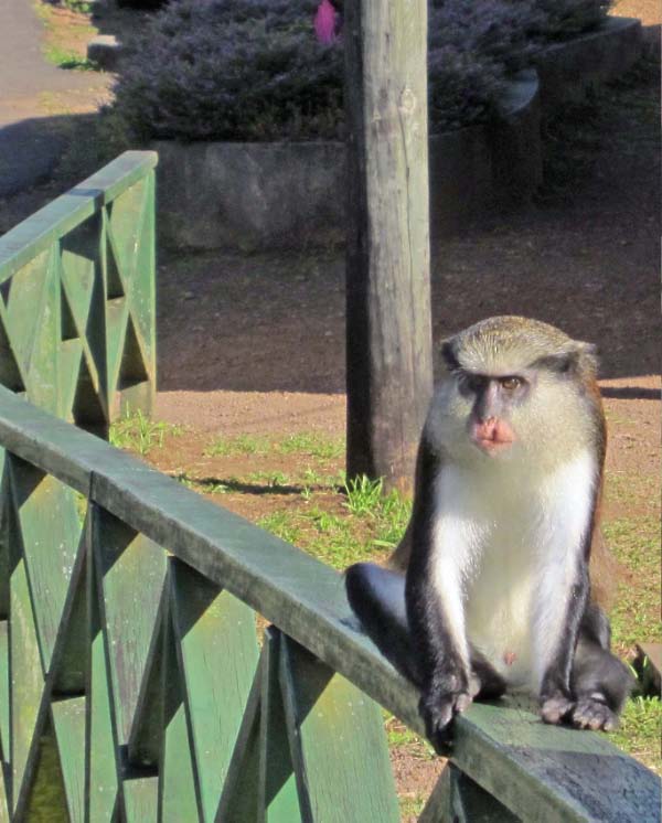 Center, Mona Monkeys brassily approached looking for a handout.