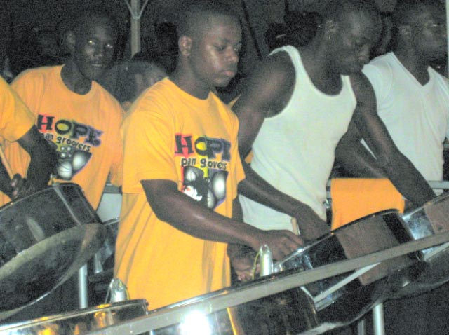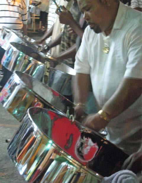 set up their pans and practice in the streets, pushing their