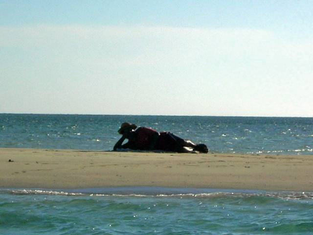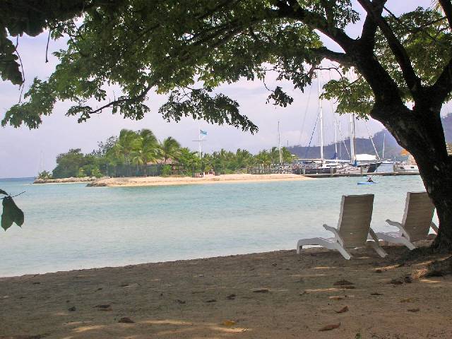 | Views of anchorage | Mom relaxing on beach | A walk along the beaches pass an array of resorts incl. Plantation Isl. Resort |