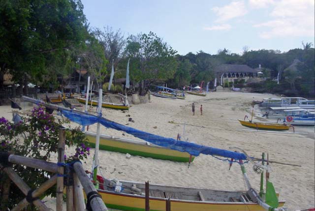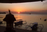 We headed to shore and made our way to one of the many resort restaurants that lined the popular tourist getaway form Bali. The bar overlooked the beautiful stretch of beach, lined with the outrigger type fishing boats that always remind me of spiders.