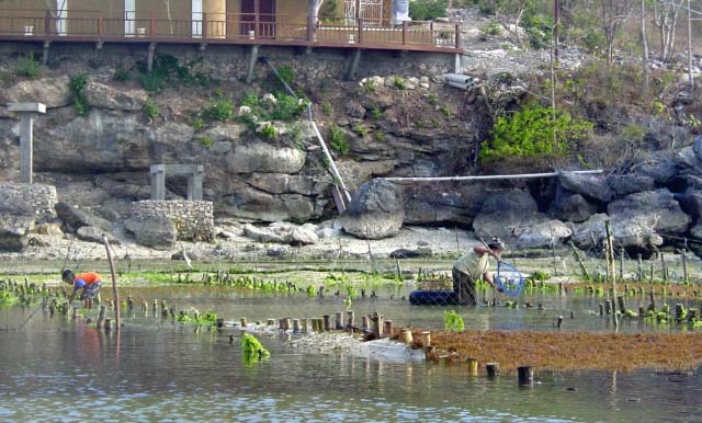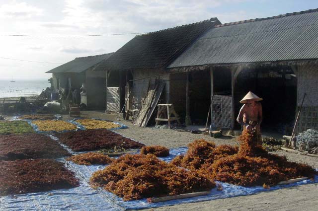 The cultivation of the seaweed is strenuous work, evidenced by all the women and children working knee deep in salt water all day in the fields.