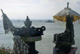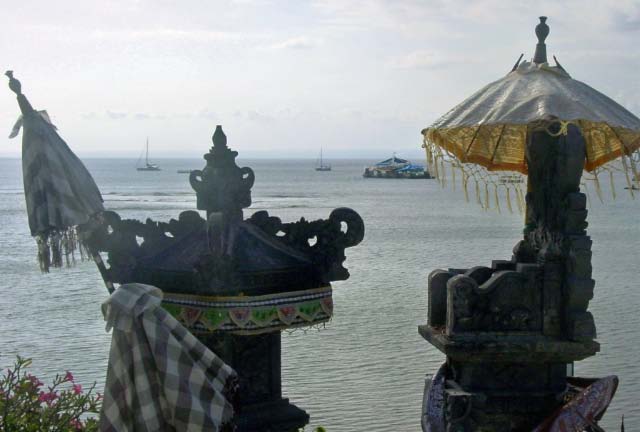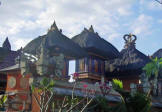 |  A detour away from the waterfront revealed an enchanting town with predominantly Hindu influence illustrated by the numerous ornate temples, attached to every house, and offerings covering the walkways. The roofs of the houses were more decorative than
