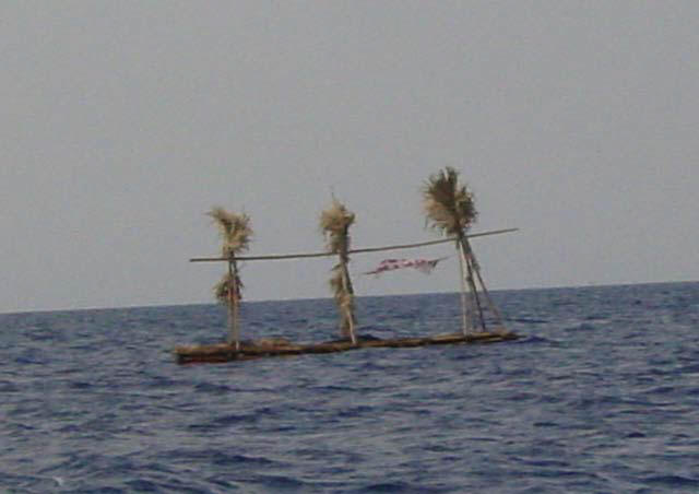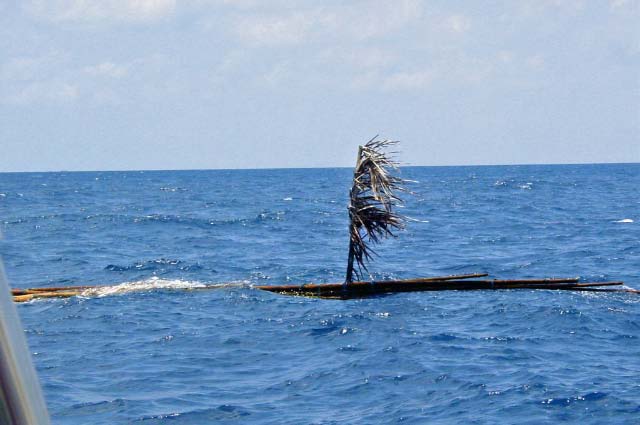 Worse than the boats, who could get out of your way, were huge unusual fish attracting devices (fads) consisting of a bamboo platform, and sometimes marked with a couple of dried palm fronds. Many of these sat just below the water and were hard to see in the daylight, never mind at night as they are not lit. And since they are wooden, they do not show up on radar. When we could still see, we passed row upon row of these ominous things, spaced only a couple of hundred meters apart. They are all over the place, even 20 miles off shore.