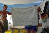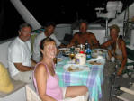 They had arranged a fabulous dinner for us aboard GWTW, complete with cake and sparklers! And Annie had sacrificed a bedsheet to make us a "Welcome Home" sign! We partied until we couldn't keep our eyes open any longer.