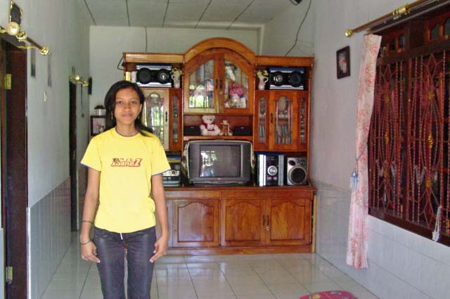 We were invited into one of the homes. It was spotless inside, not much furnishings, apart from a beautiful wooden credenza that held a television set. We met the family and took photos before continuing on down the street.