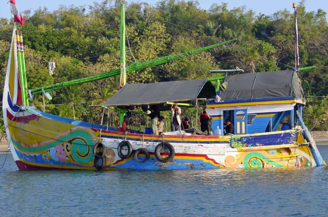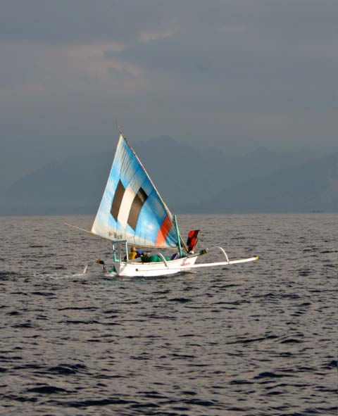 Sailing in Indonesia is the most perilous of anywhere when it comes to dodging obstacles in the water. There are numerous fishing boats of every description imaginable, some powered with outboards, some with sail, and some with only a sole paddler very busy bailing as fast as he can. None of these have lights.