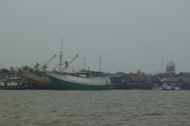 Dodging ships, ferries and a cat's cradle of fishing nets, marked only by small chunks of Styrofoam, strung across the river as well as shallow shoals, we reached Kumai.