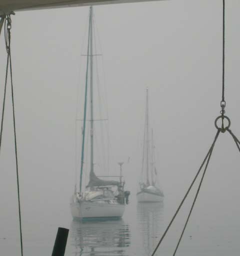 Oct 15 Day was just breaking when I awoke from a sound sleep by a horrid crack and shuddering to the boat and was up in the cockpit to join Gord in a split second. I thought we had hit a reef! Gord happened to look over the stern just as a huge whale's tail slapped the surface and descended to the depths below. We had struck a whale perhaps sleeping on the surface, or he had run into us! Either scenario, we made terrorizing contact.