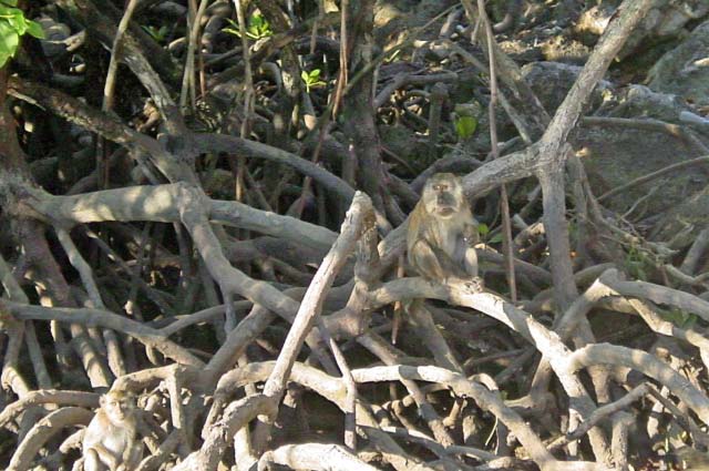 Not too far away, sitting quietly in the mangroves were some cute monkeys. |