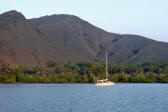 The muddy anchorage at the end of the finger in Crocodile Bay was smooth and protected, surrounded by mangroves and the familiar scorched grassy high hillsides with little vegetation.