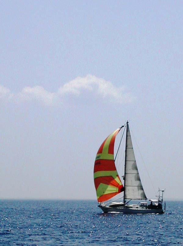 Another day of flat seas with little wind but we managed a spinnaker run for most of the morning, then remained under white sail all the way to Gili Air, some 42 miles from Gili Lawang.