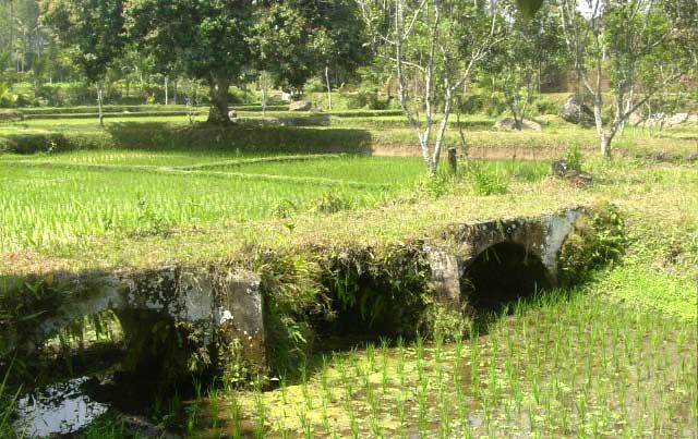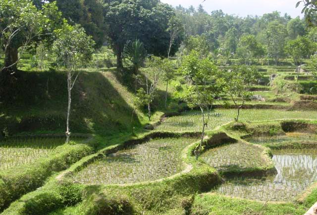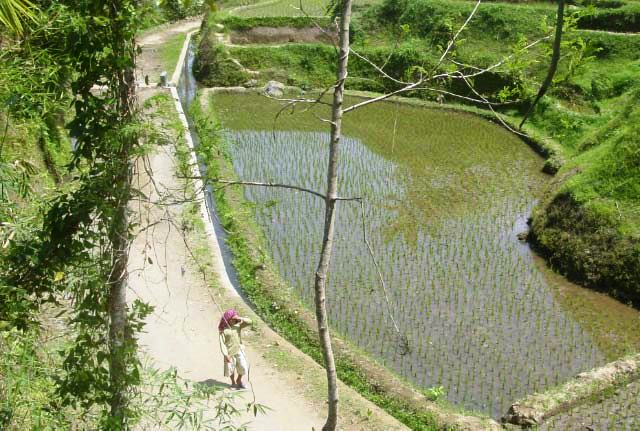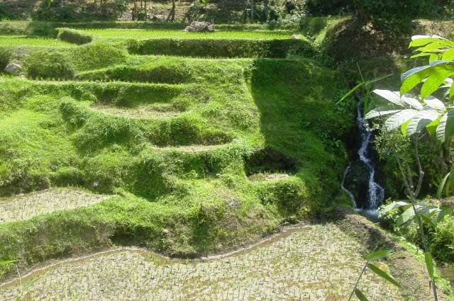 We had lunch at Tete Batu, overlooking extensive Rice fields terraced and looking like interlocking pieces of a puzzle. While we were waiting for our order to arrive our guide took me for a walk in the patties, many of which were first built by the Dutch. |