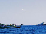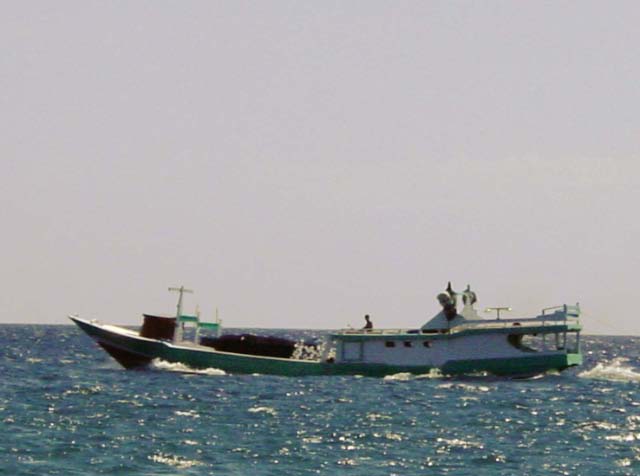 July 25/06 It was early morning under bright sunny skies when we spotted the numerous boats already anchored in Kupang. By now the breeze had picked up and the chop was rather intense. The boats were looking most uncomfortable bobbing at anchor.