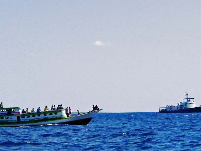 Navy Gunboat anchored out presided over us constantly but we were not sure if this military presence, and all the “Polisi” boats motoring around, were to protect us or retain us! |
