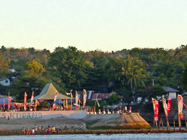 Kupang is the largest major port of West Timor, a city of some 300,000 people, sprawling up the hillside from the waterfront where the yachts were anchored. |