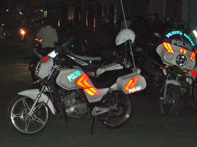 Aside from bemos, no cars in sight, even the police ride motor bikes |