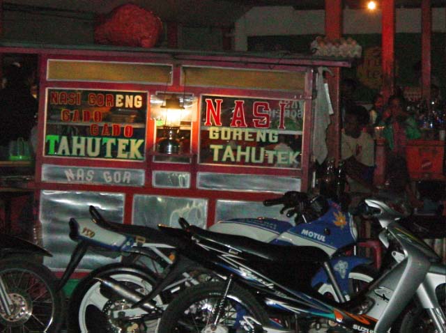 out downtown, where rows of rumah makan, (Indonesian food