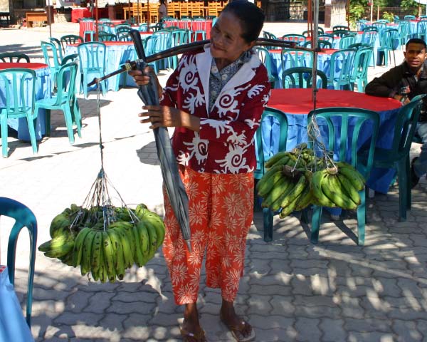 outdoor market and stocked up on fresh produce. By now I felt I was getting pretty proficient at bargaining with the Indonesians however it was nice to have the help of our guide when the counter offers became too confusing. There were lots of items for sale in addition to fruits and veggies including ikats,