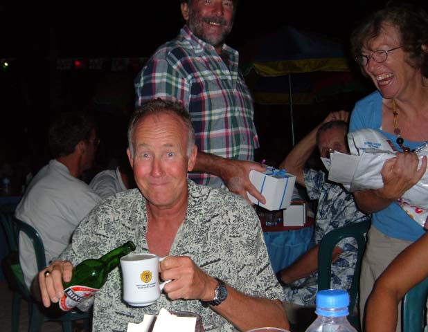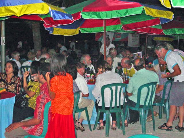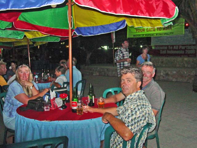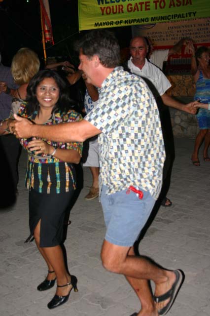 The rally participants were invited to attend the formal Gala Dinner and Welcome Party with the Mayor of Kupang. We landed our dinghies on th with the Mayor of Kupang. We landed our dinghies on the beach already jam packed with rubber duckies attended by the Rally Boys in Blue and made our way to Teddy's Bar, where elaborate table settings beckoned us. |