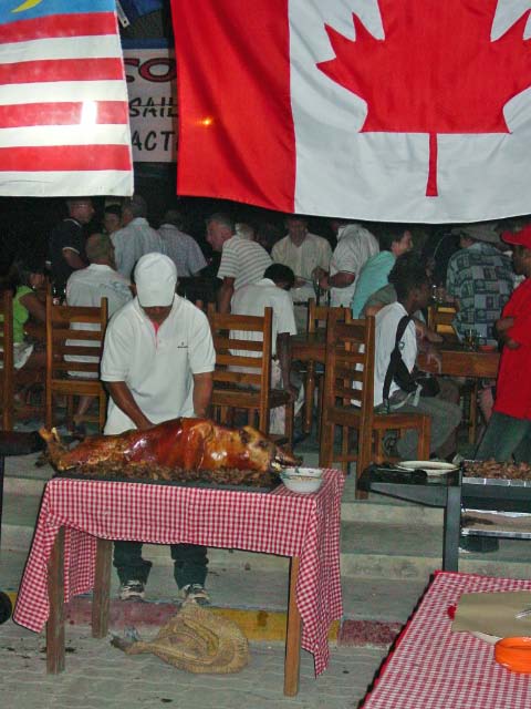 A pig roast was prepared for us along with a buffet of noodles, vegetables, sweet bread, potatoes and the usual condiment of very, very hot sauce.