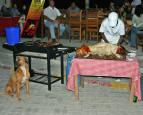 The resident dog stood by hopefully when the carving was near completion. |