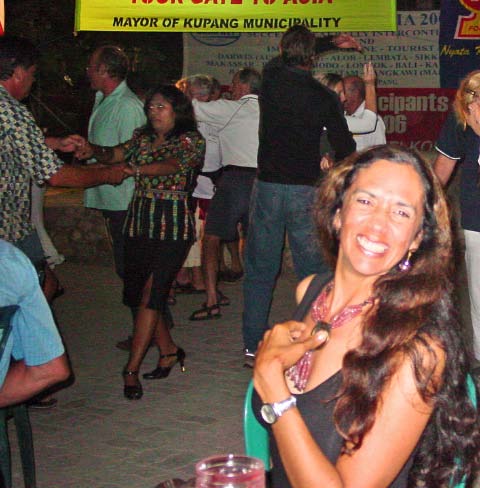 Gord was commandeered by a young Indonesian woman and after he taught her to jive, there was no stopping her. She would not let him sit down and when he finally brought her to our table to introduce her to me, it wasn’t long before she had grabbed him and was back on the dance floor before I could get a turn! I had to laugh because she was having such a great time! |