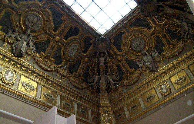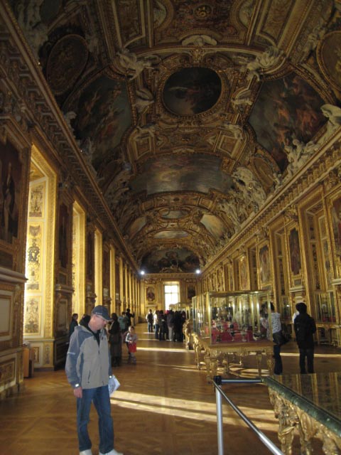 The interior of The Louvre was awesome, the architecture and the decorative ceilings took our breath away. 4 centuries of French Kings and emperors improved and enlarged the palace. |