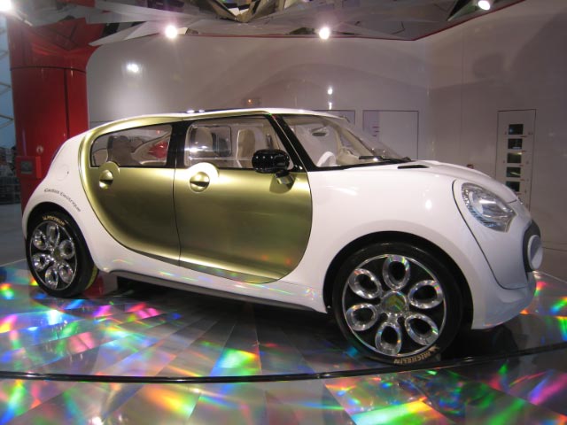 We walked along Champs-Elysees, stopping to see a display of futuristic electric cars. |