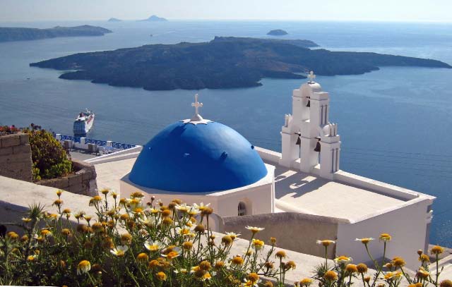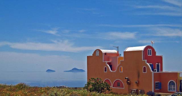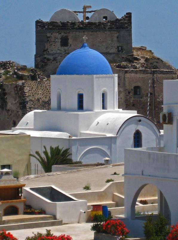 Pyrgros We drove up a steep hill to a monestary that gave us a wondrous vestige of Santorini and the surrounding islands |