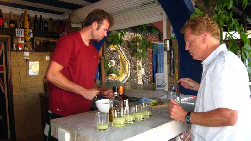 Partying with the locals We quickly made friends with the other guests lazing around the pool. Bruce taught the local bartender how to make a proper Margarita (you can only drink one!!). We all went out for dinner at a fav local restaurant by the beach and ate some sort of meat dish wrapped up in a paper bag! |