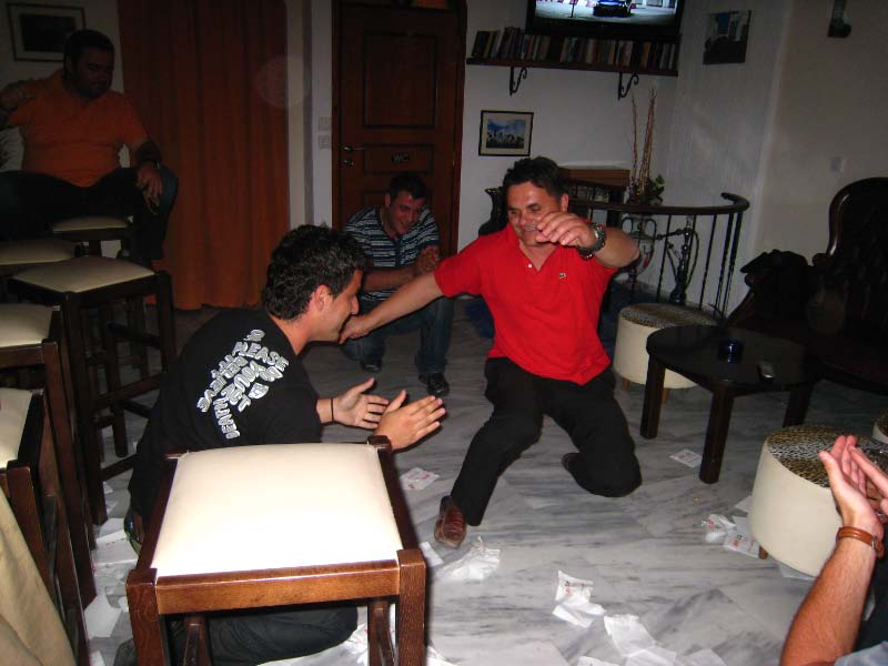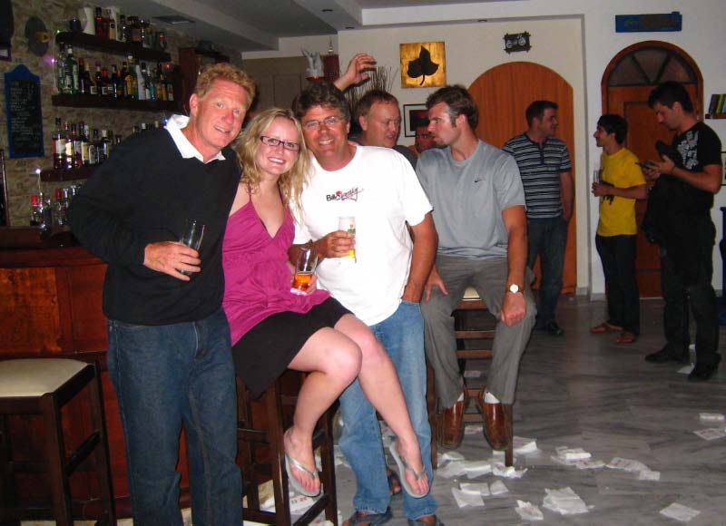 Joining us was a couple from Edmonton!! And another couple from White Rock!!! Bruce was amazed that he had come all the way to Greece to party with people from his home town. Later we were taken to a local bar where the men danced, complete with the throwing of napkins and the smashing of plates on the floor. We got home at 3am! |